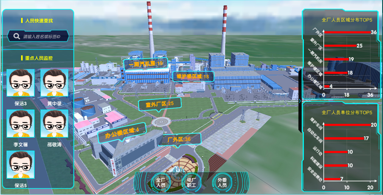 電廠面積大,人員及設備繁多,內部結構復雜且部分工作危險性高,所以人員安全定位成為行業內較強烈的需求。實時人員定位對提高企業安全防護功能和監管效果具有很重要的作用。電廠人員定位系統可以實現人員管理的信息化、數據化、智能化、精細化,全面提升安全管理能力。