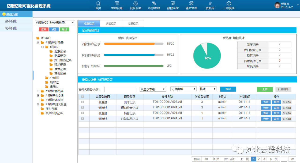 云酷科技多年來專注于電廠安全管理業(yè)務(wù),針對鍋爐安全問題所研發(fā)的三維可視化鍋爐防磨防爆管理系統(tǒng)充分結(jié)合了先進(jìn)的科技技術(shù)與電廠實際經(jīng)驗,為鍋爐安全管理、四管泄爆問題提供管理工具。